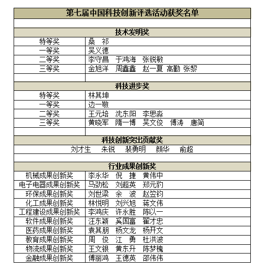 本届评选历时4个月,设置技术发明奖、科技进步奖、科技创新突出贡献奖、行业成果创新奖四大奖项,经过初选、专家评审打分、复评等环节严格筛选,最终获奖者从全国近5000名申报者中脱颖而出,他们是科技创新领域最优秀的人才,是未来科技创新发展的中流砥柱。现在将获奖名单公布如下: